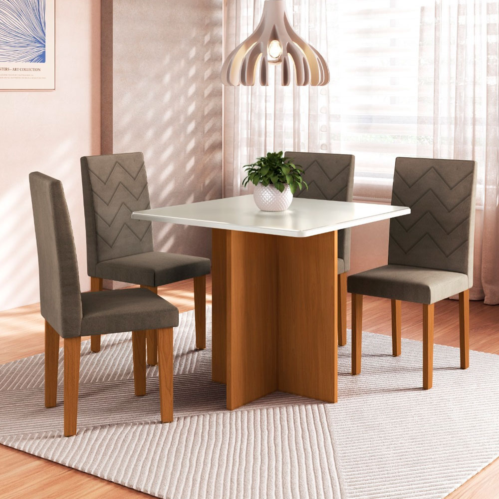 O conjunto de mesa Santiago com 4 Cadeiras Agata da Indekes é ideal para quem busca elegância, funcionalidade e conforto em ambientes compactos como cozinhas ou salas de jantar. Ele combina design moderno com materiais resistentes, oferecendo uma excelente opção para o dia a dia.